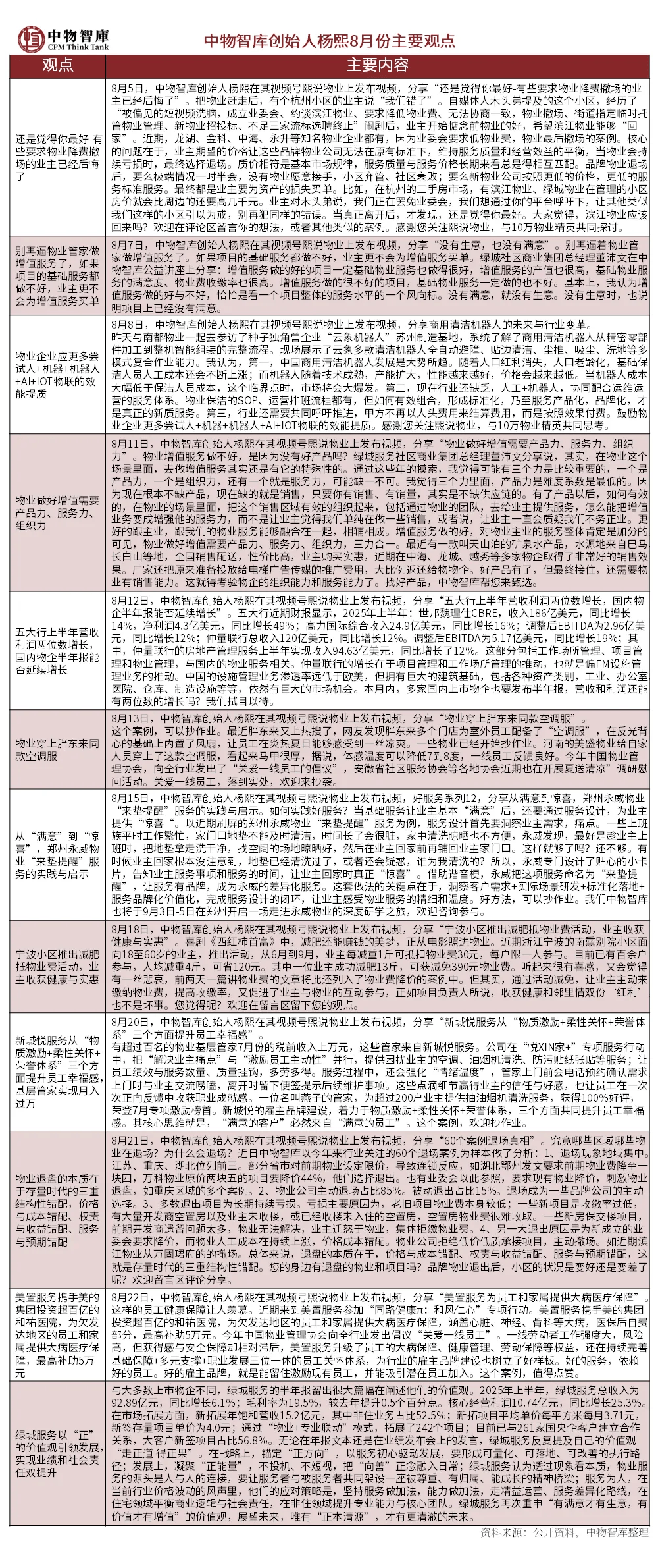 事件八:战略合作方面,万物云携手政府升级骑手通行方案,实现3步5秒进小区;南都物业与安邦护卫签订战略合作协议,双方将在智慧安防、低空经济和人工智能等领域合作;绿城服务与爱尔医疗投资集团签署战略合作协议,共同探索大健康领域物业服务的创新模式;碧桂园服务与国家公众营养改善项目办公室正式达成战略合作,推动健康服务在社区普及;永升服务与兔喜生活达成战略合作,双方将在快递驿站合作的基础上,拓展生鲜水果供应链、无人配送、旧物回收等领域